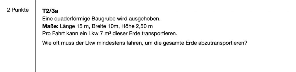Hinweis: Manche Größenverhältnisse weichen von den Originalprüfungen leicht ab. Die Aufgabenstellung und der damit notwendige Lösungsweg wird dadurch aber nicht beeinflusst. Auch sind die Bilder und Skizzen nicht die Originalen, sondern diesen nur nachempfunden.