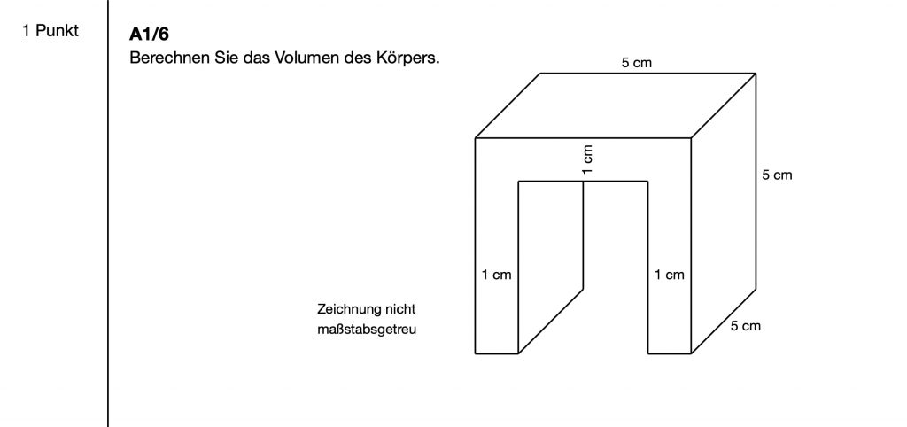 Hinweis: Manche Größenverhältnisse weichen von den Originalprüfungen leicht ab. Die Aufgabenstellung und der damit notwendige Lösungsweg wird dadurch aber nicht beeinflusst. Auch sind die Bilder und Skizzen nicht die Originalen, sondern diesen nur nachempfunden.